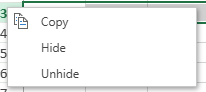 워크북의 viewModePermission에 allowHideRowsOrColumns가 포함된 경우, 컨텍스트 메뉴에 복사, 숨기기(Hide), 숨김 취소(Unhide)가 표시됩니다.